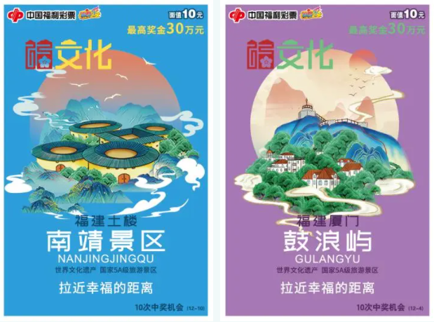紧挨着广东的福建却呈现出另一种风情。作为古代海上丝绸之路的起点,也是现代海上贸易的重要聚集地,海洋文化在福建文化中占据着重要位置。刮刮乐“福文化”选取福建省标志性的历史名迹,如“三坊七巷”“福建土楼”等,展现了山水交融、和谐共生的“福文化”。