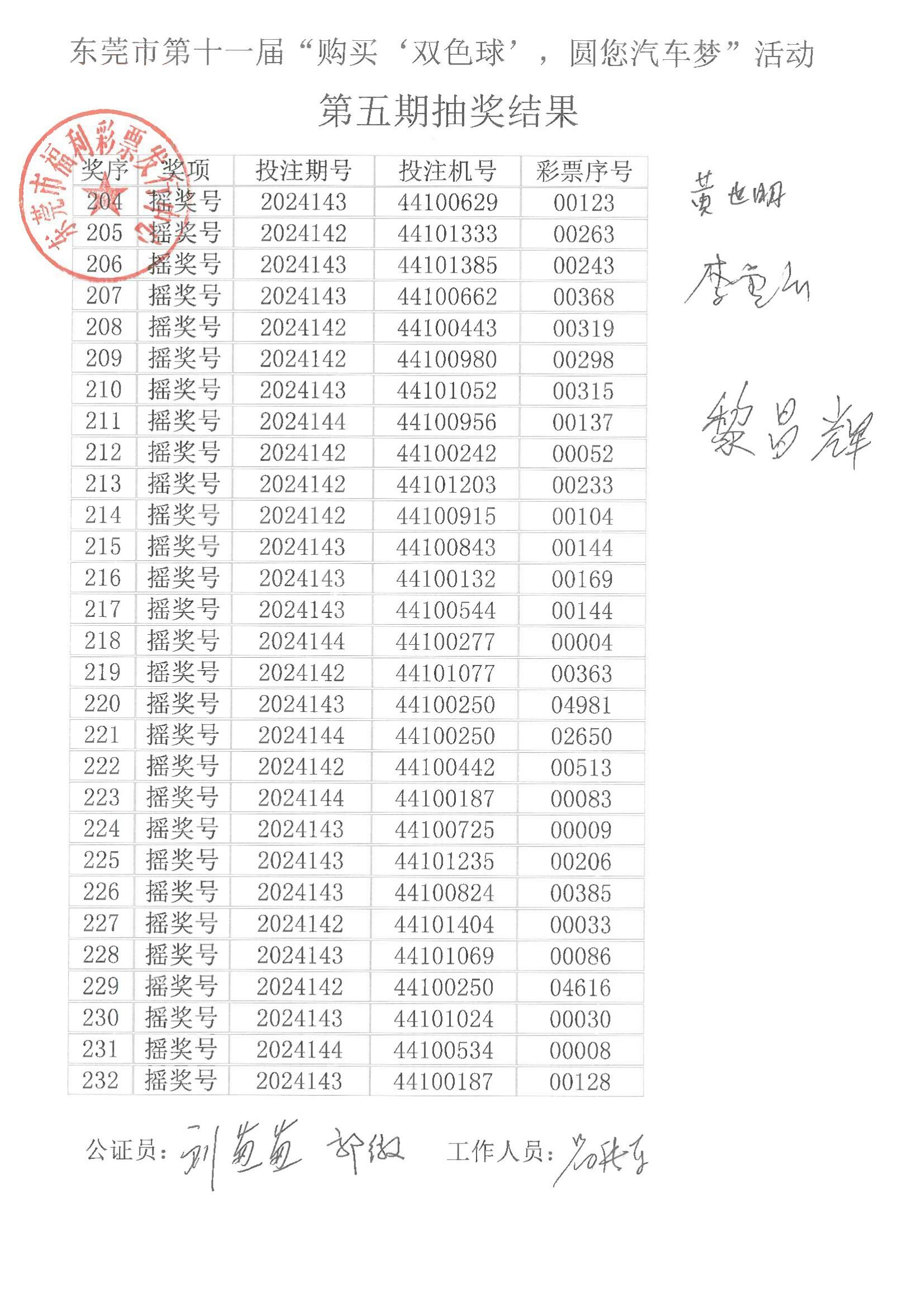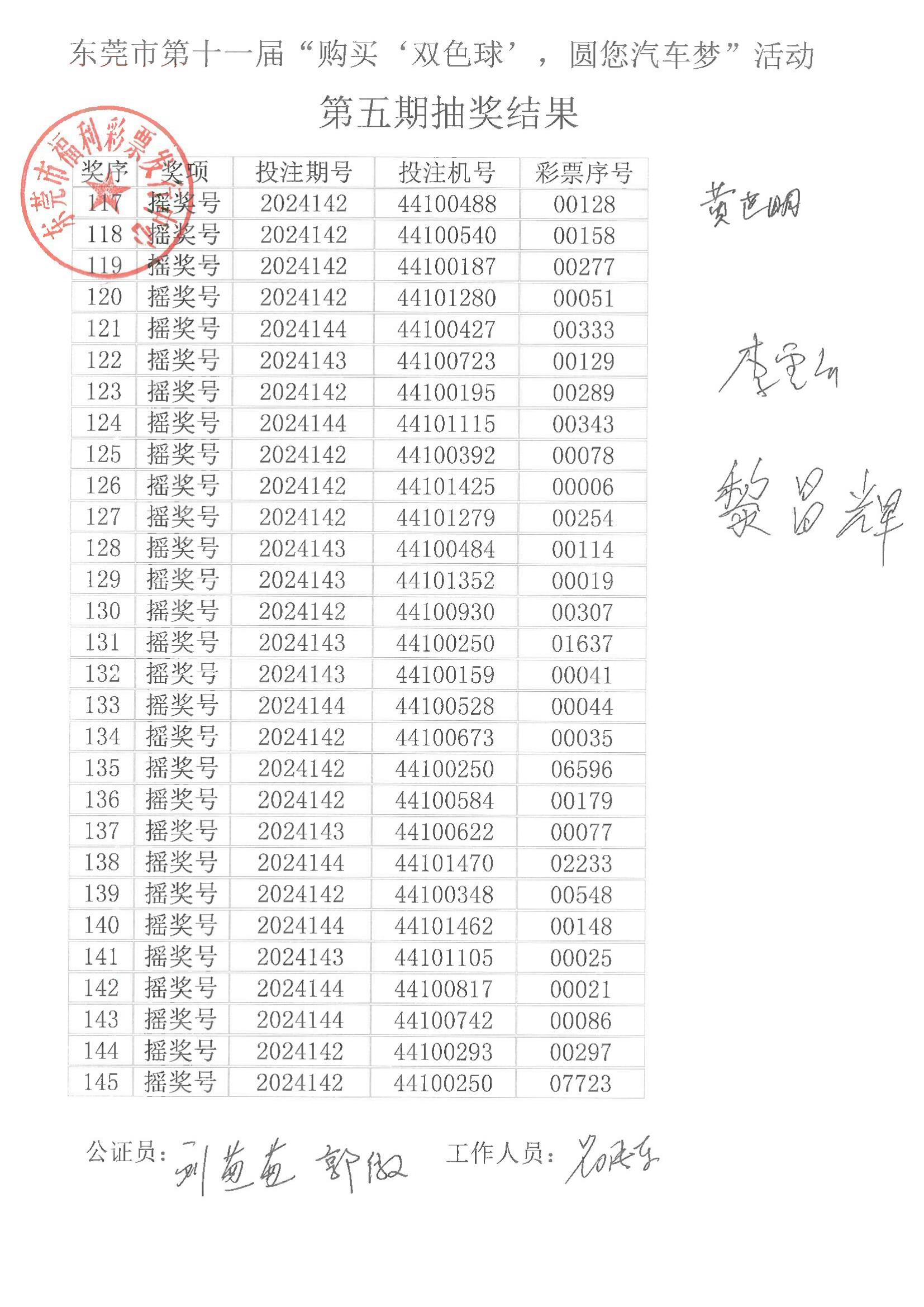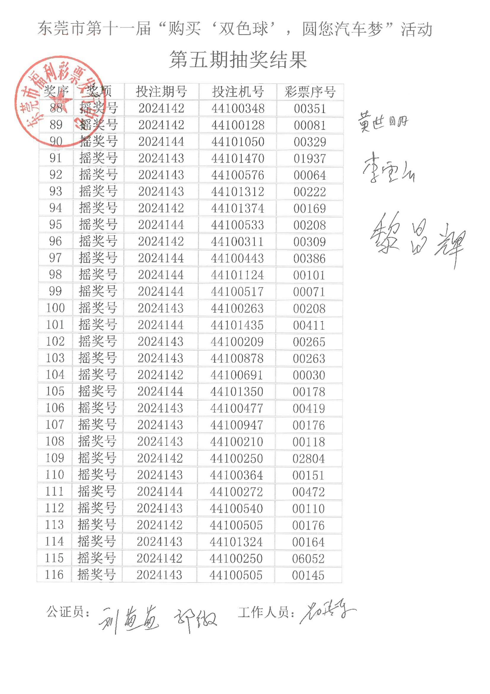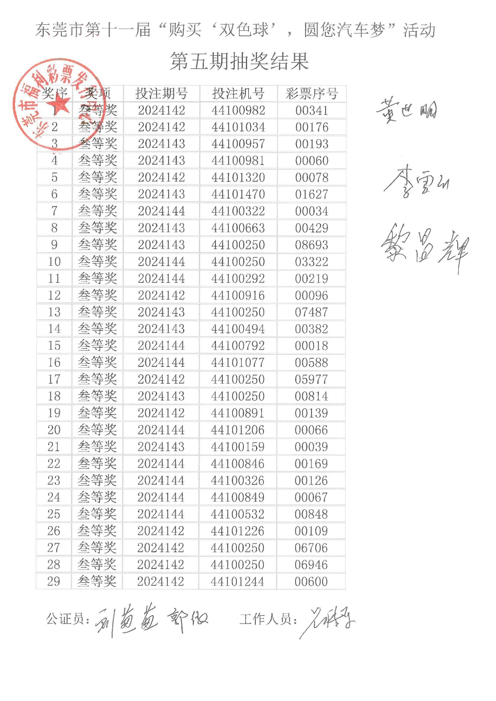 东莞市第十一届“购买‘双色球’,圆您汽车梦”活动第五期抽奖结果