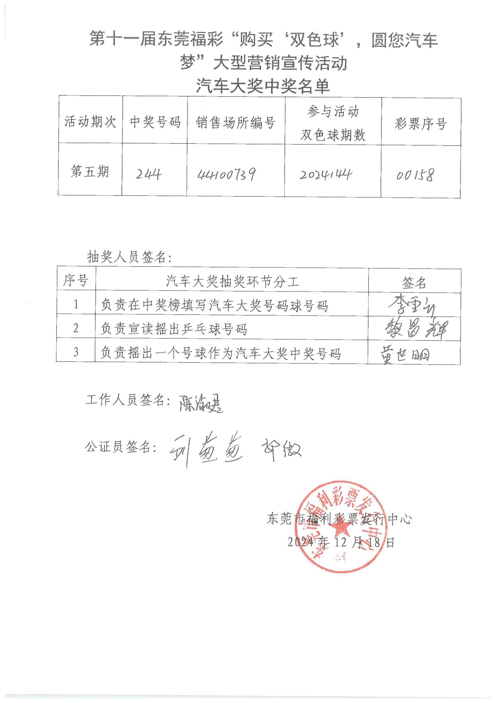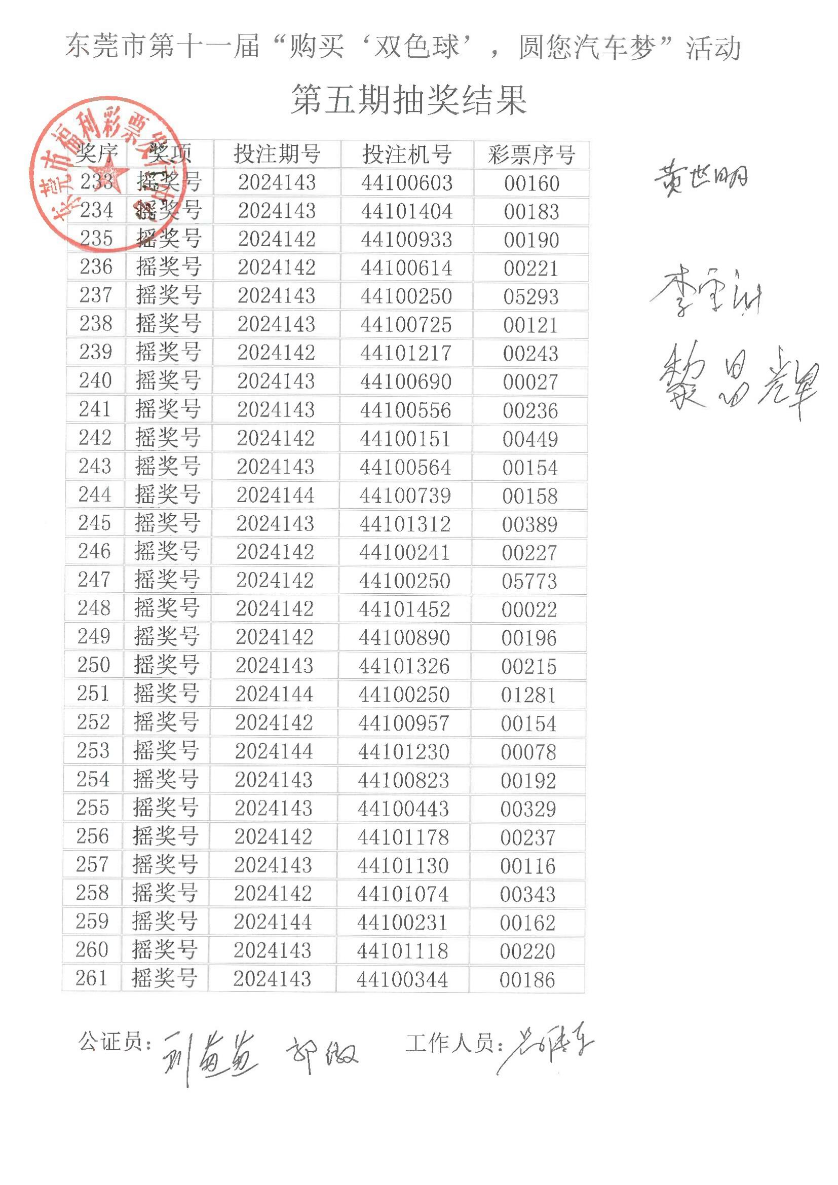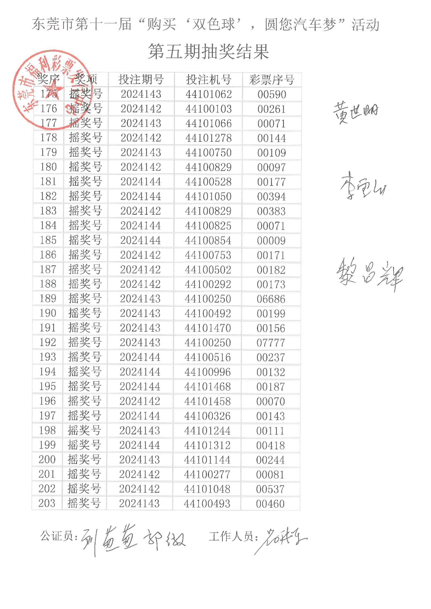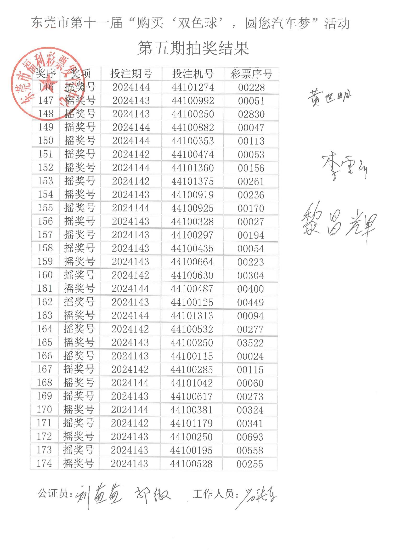 东莞市第十一届“购买‘双色球’,圆您汽车梦”活动第五期抽奖结果