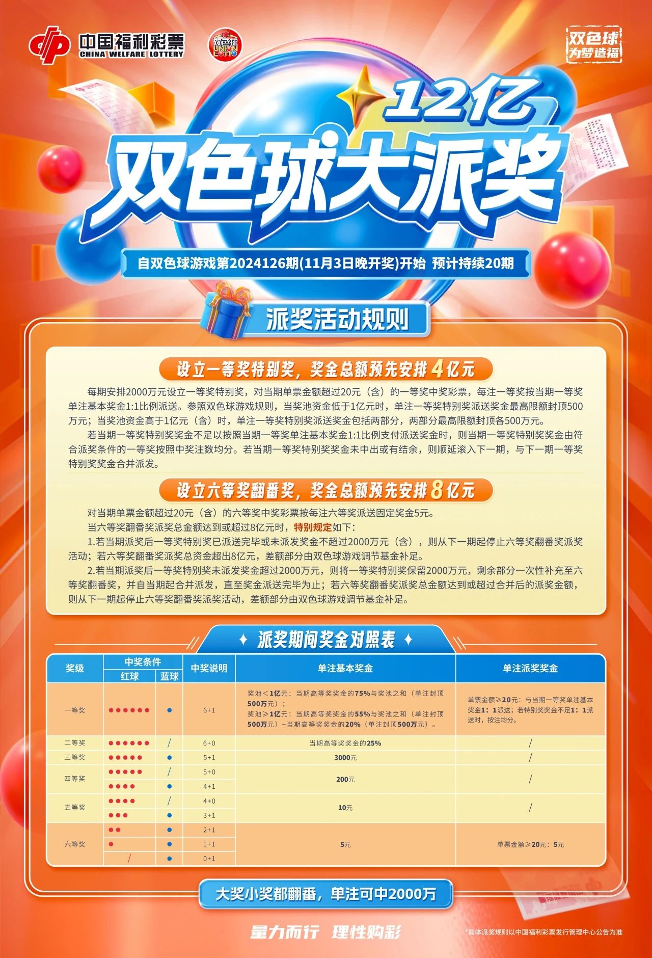福彩双色球12亿大派奖